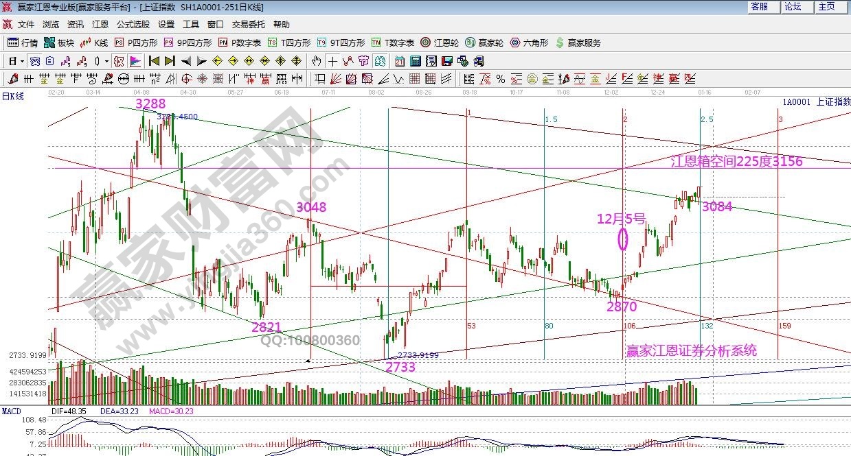 ★依據贏家江恩系統(tǒng)自由時間價格計算器(江恩箱)分析:指數(shù)下探江恩箱下降3*2線3084點支撐后反攻,支撐線上運行短期看多。
