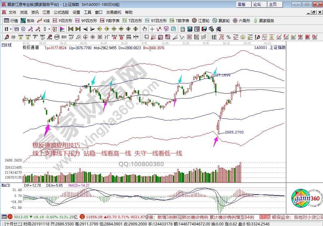 周二,滬深指數(shù)早盤集體低開(kāi)在江恩箱關(guān)鍵位,創(chuàng)業(yè)板一度大跌超4%,午盤跌幅收窄,創(chuàng)業(yè)板上演V型大反轉(zhuǎn),再創(chuàng)反彈新高,盤面呈現(xiàn)深強(qiáng)滬弱。板塊方面,受到外圍影響,病毒防控類板塊走強(qiáng),多個(gè)板塊位于板塊漲幅榜前列。汽車、車聯(lián)網(wǎng)兩個(gè)高度相關(guān)的板塊午后強(qiáng)勢(shì)拉升,超級(jí)電容板塊亦有強(qiáng)勢(shì)表現(xiàn)。光刻膠板塊今天波動(dòng)巨大,午后重新拉升走強(qiáng)。截至收盤,滬指下跌0.6%,報(bào)收3013點(diǎn);深成指上漲0.71%,報(bào)收11856點(diǎn);創(chuàng)業(yè)板指上漲1.03%,報(bào)收2287點(diǎn)。