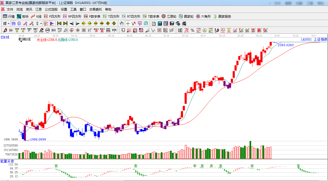 ★依據(jù)贏家江恩系統(tǒng)波段百分比提示:作圖1849點(diǎn)-2270點(diǎn)做延伸線,今日突破90度2376點(diǎn)阻力,依據(jù)規(guī)則阻力轉(zhuǎn)換支撐,短期上方阻力位是120度2411附近,
