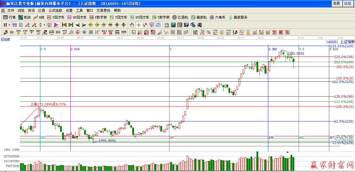 ☆依據(jù)贏家江恩系統(tǒng)黃金時(shí)間周期線提示:10月9日以及寒露時(shí)間節(jié)點(diǎn)之后,指數(shù)如期展開回落,下一時(shí)間窗口10月22日。