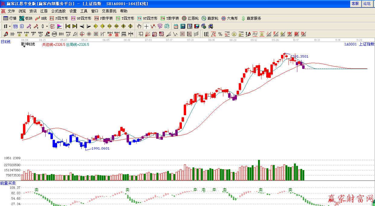 ★依據(jù)贏家江恩系統(tǒng)極反通道提示:在藍(lán)色外軌線之下,繼續(xù)回落,生命線支撐2290附近,短期依然保持謹(jǐn)慎態(tài)度。
