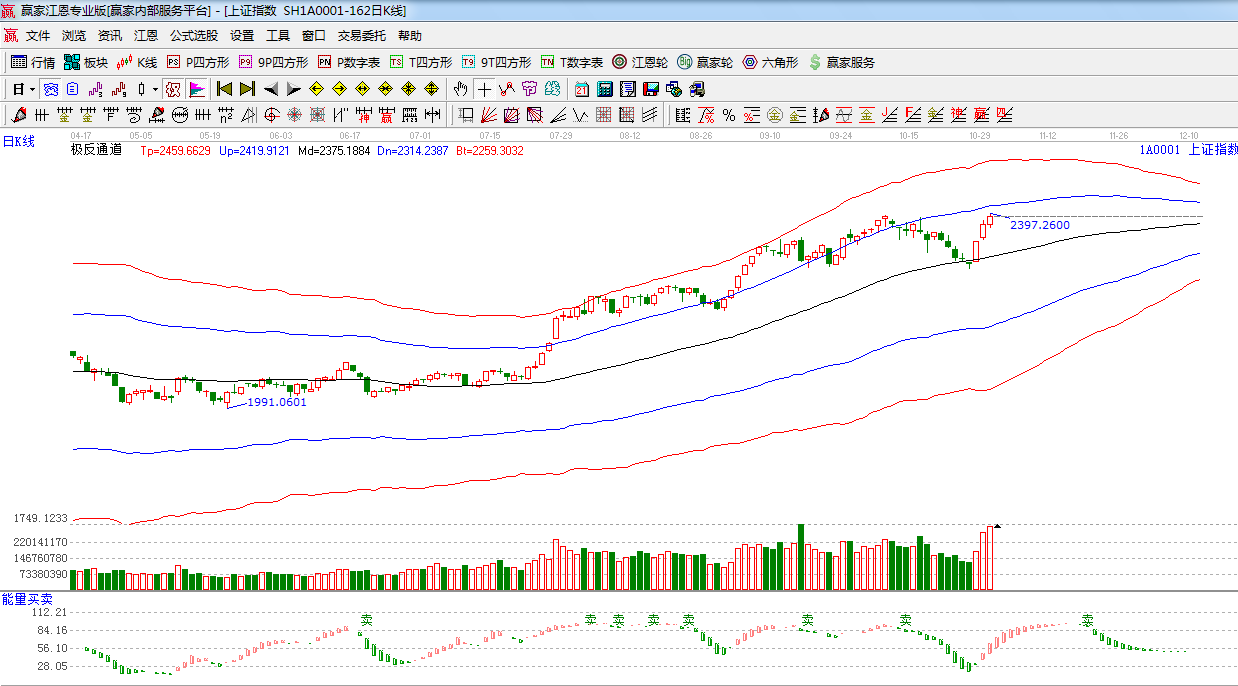 ★依據(jù)贏家江恩系統(tǒng)極反通道提示:指數(shù)繼續(xù)放量上行,上方藍(lán)色外軌線阻力是在2410點,短線謹(jǐn)慎看多。