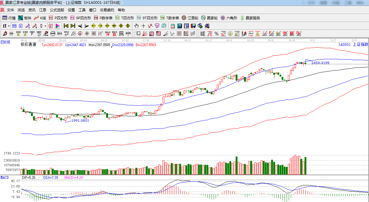 江恩看盤綜述:依據(jù)贏家江恩技術(shù)工具分析得出:今日反抽外軌線未果,午后跳水,陰十字星報(bào)收,不過收盤價(jià)依然保持在江恩120度2410點(diǎn)之上,預(yù)計(jì)下周一大盤繼續(xù)在120度2410--270度2448點(diǎn)區(qū)間強(qiáng)勢震蕩,操作上,適當(dāng)降低倉位,切忌盲目追漲。