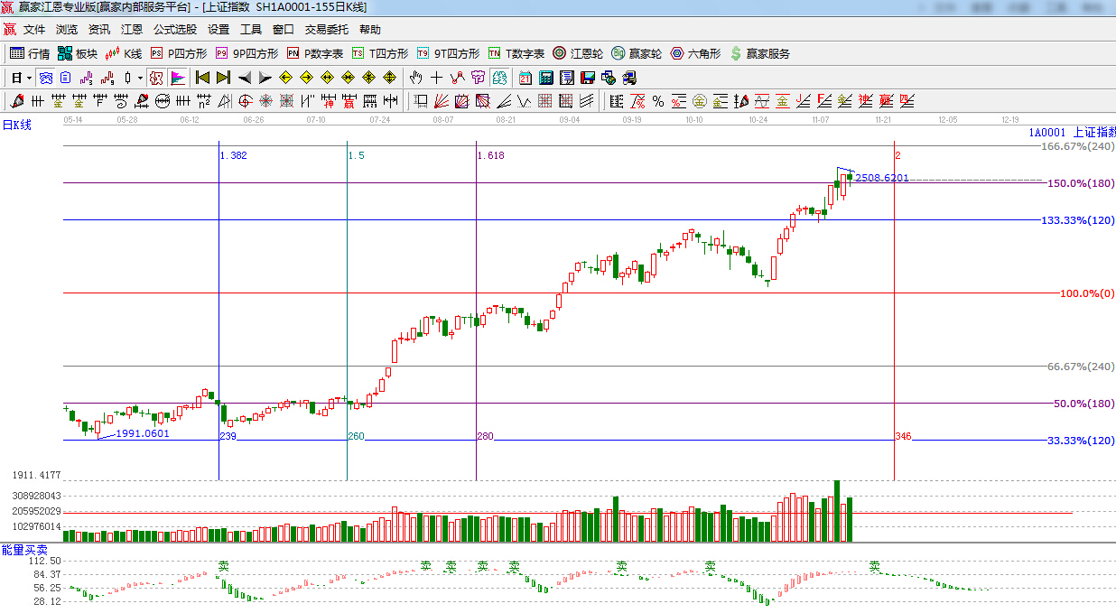 江恩看盤綜述:依據(jù)贏家江恩技術(shù)工具分析得出:全天圍繞江恩180度震蕩,終盤再報(bào)十字星,目前60分周期背離嚴(yán)重,180度支撐是2480點(diǎn),此位置一旦破位,下方目標(biāo)位是120度是2410點(diǎn),短線謹(jǐn)慎為主。操作上,有盈利個(gè)股注意逢高兌現(xiàn),漲幅過大的,要注意其殺跌風(fēng)險(xiǎn)。