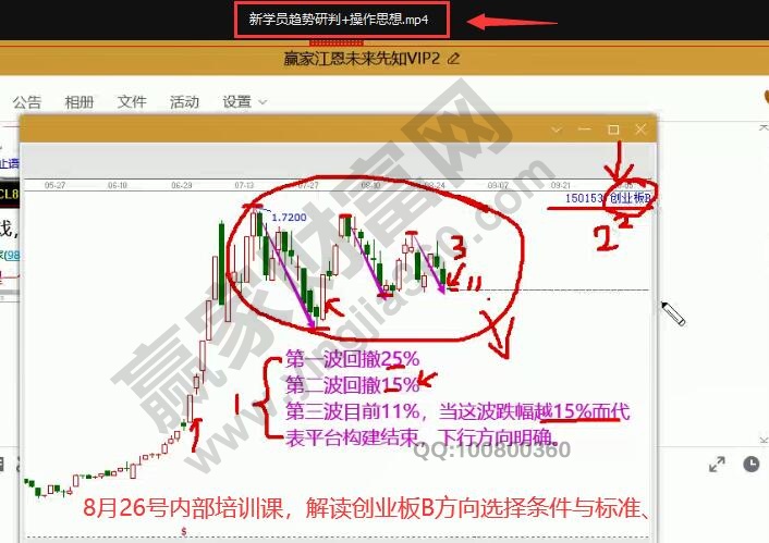 如圖3,8月26號正式學(xué)員內(nèi)部培訓(xùn)課繼續(xù)講解創(chuàng)業(yè)板B、創(chuàng)業(yè)板、滬指的分析方法及判斷條件與方向。