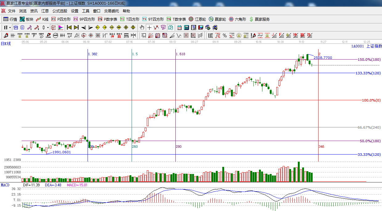☆依據(jù)贏家江恩系統(tǒng)黃金時間周期線提示:重點關(guān)注時間窗口是11月24日。