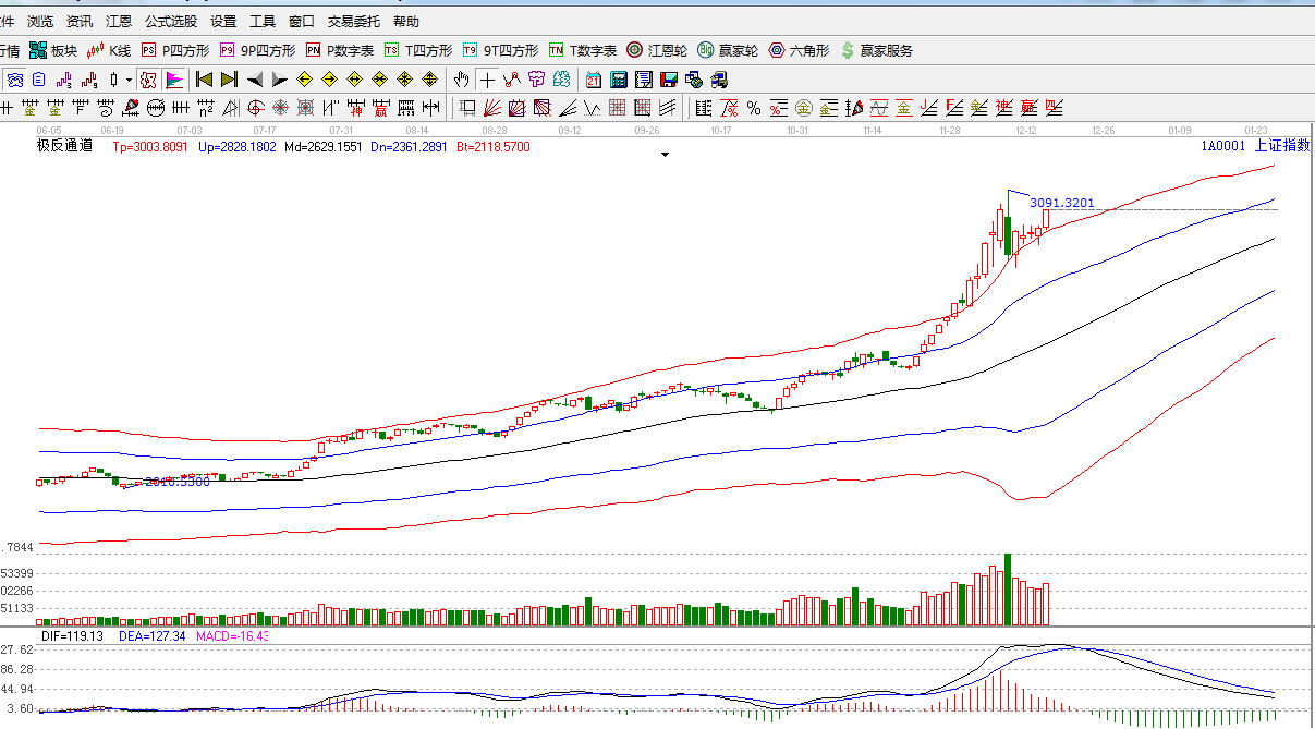 江恩看盤綜述:依據(jù)贏家江恩技術(shù)工具分析得出:今日整體在金融權(quán)重股的全面推動下,指數(shù)呈現(xiàn)大幅上攻行情,創(chuàng)業(yè)板,中小板表現(xiàn)不佳,預(yù)計明日大盤將繼續(xù)沖高,0度位置3041點—3111點區(qū)間阻力附近將會再次引起震蕩,操作上,合理控制倉位,在滯漲板塊中尋求機會,比如食品飲料、農(nóng)業(yè)板塊等.