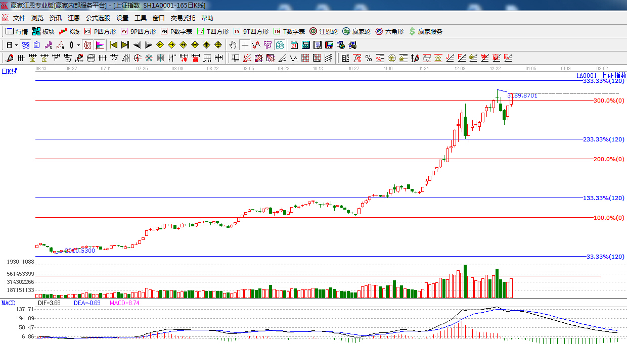 江恩看盤綜述:依據(jù)贏家江恩技術(shù)工具分析得出:上周五大盤在金融股的推動下延續(xù)反彈,收復(fù)江恩0度位置3111點(diǎn),此位置回踩不破,指數(shù)將有繼續(xù)挑戰(zhàn)新高的可能。上方的階段阻力依然看江恩120度3257點(diǎn),但從量能表現(xiàn)上短線風(fēng)險仍然需要防范,操作上:適當(dāng)控制一下倉位。