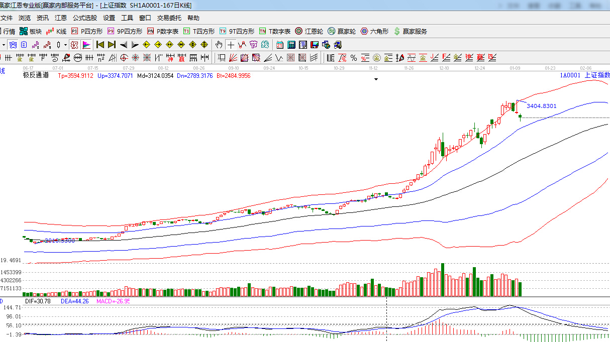 江恩看盤綜述:依據(jù)贏家江恩技術(shù)工具分析得出:今日滬深兩市表現(xiàn)疲弱,滬指低開下探江恩90度3188點支撐,隨后維持低位震蕩,金融股嚴重分化,題材股活躍,江恩90度支撐3188點,此位置不破,短期高位震蕩格局有望延續(xù)。但整體大勢依舊向好,操作上,合理控制倉位,繼續(xù)關(guān)注國企改革、一帶一路等近期熱點,另外,傳媒、軍工等題財股也可適關(guān)注。