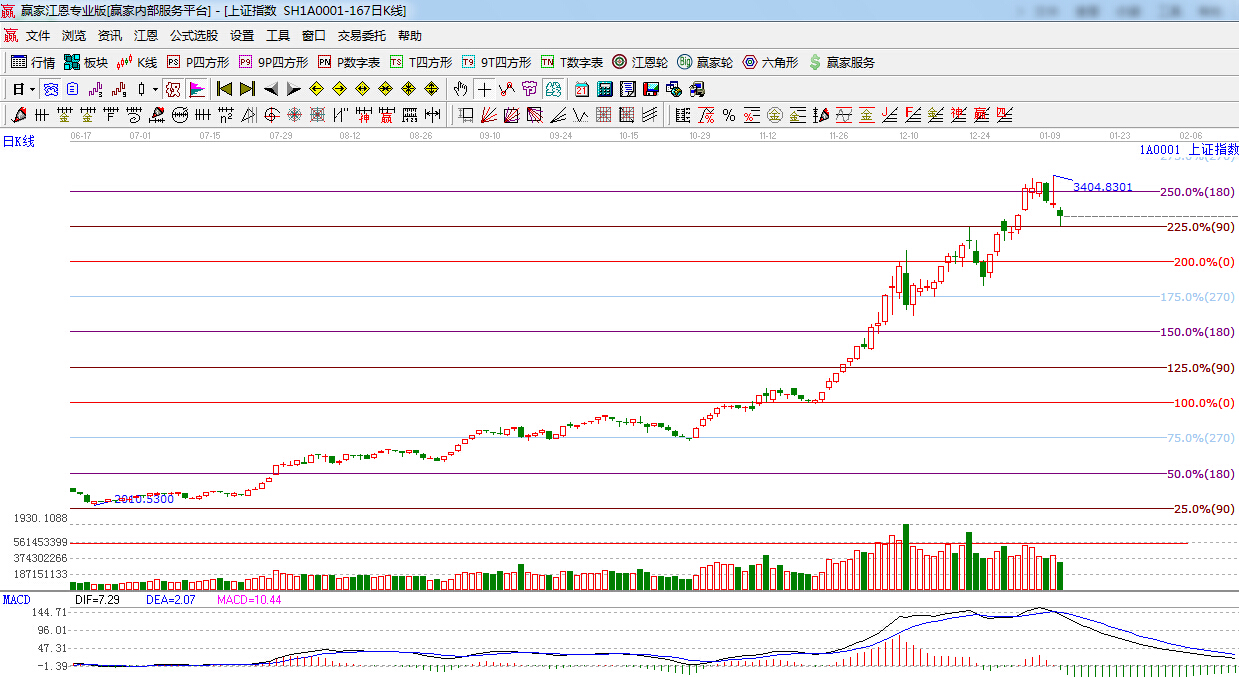 ★依據(jù)贏家江恩理論系統(tǒng)波段百分比提示:滬指低開下探,在江恩90度獲得支撐,180變?yōu)樽枇ξ唬?337點,另外上方阻力是240度,270度,3440點,3490點。