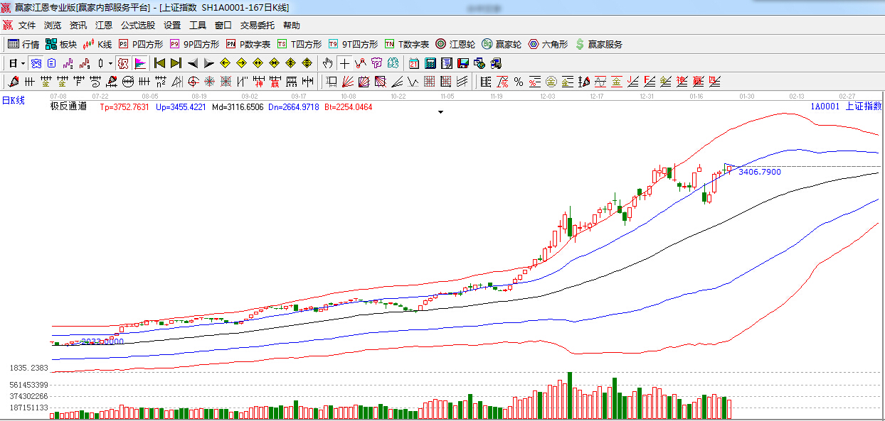 ★依據(jù)贏家江恩理論系統(tǒng)極反通道提示:滬指繼續(xù)圍繞極反通道藍(lán)色外軌線震蕩上行,外軌線支撐3361點(diǎn),此位置不破,繼續(xù)看多。