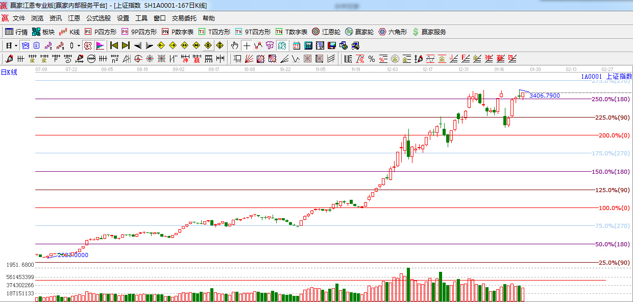 ★依據(jù)贏家江恩理論系統(tǒng)波段百分比提示:早盤滬指回探江恩180度支撐后,震蕩上行,180度3337點(diǎn)此位置不破繼續(xù)看多,上方目標(biāo)位江恩270度3486點(diǎn)。