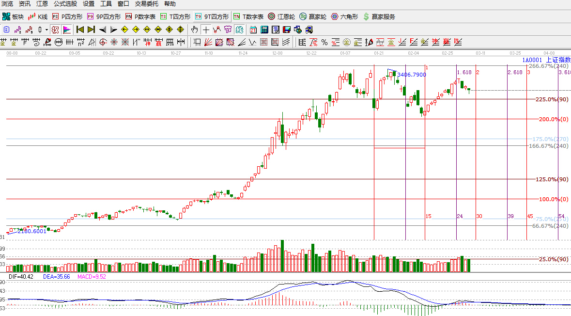 江恩看盤綜述:依據(jù)贏家江恩技術(shù)工具分析得出:市場自3月2日時間窗口后滬指小幅震蕩回落,今日如期回落至極反通道生命線止跌,依據(jù)極反通道規(guī)則,生命線支撐3218點(diǎn),此位置不破,中期趨勢不變。操作上,可適當(dāng)逢低介入國資改革、環(huán)保、新能源汽車等政策紅利股,同時對于短線急漲的個股要控制好倉位。