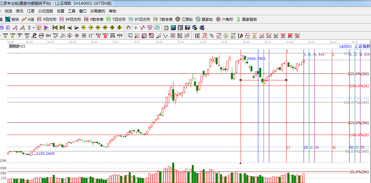 江恩理論系統(tǒng)黃金時間周期線提示:下一時間窗口留意3月17日附近。