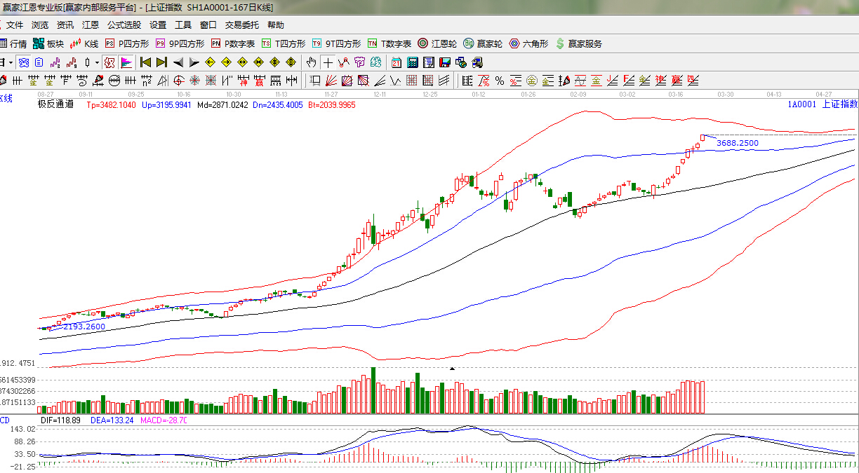 極反通道提示:滬指繼續(xù)高歌猛進(jìn),向極反通道紅色外軌走去,繼續(xù)看多。