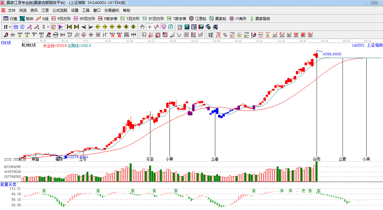 ☆依據(jù)贏家江恩理論系統(tǒng)能量買賣提示:有“賣”字出現(xiàn),指標(biāo)鈍化,謹(jǐn)慎看多。