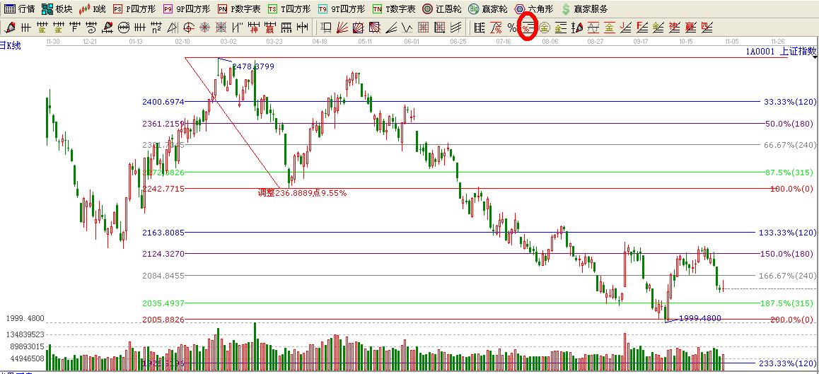 ☆依據(jù)贏家江恩系統(tǒng)工具——波段百分比延伸線提示:大盤目前處于270度2066短期壓力,這里不能上攻,看低一線至315度位置2035附近