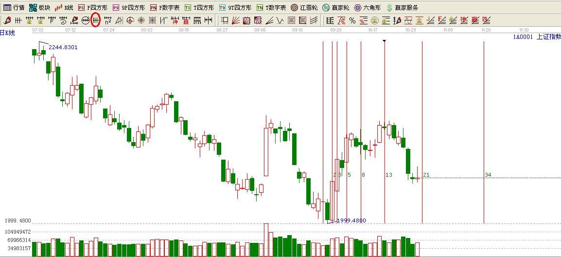 ☆依據(jù)贏家江恩系統(tǒng)工具——費(fèi)氏時(shí)間循環(huán)線。時(shí)間尺提示:大盤至9.26日反攻來上漲至13日開始橫盤下跌,明日就是重要的時(shí)間窗口了,如果不能突破極反通道生命線短期還是橫盤下跌為主。