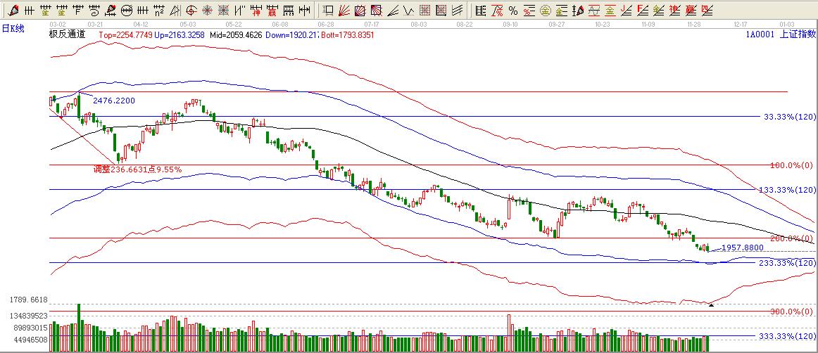 ☆依據(jù)贏家江恩系統(tǒng)極反通道提示:極反通道下軌位置1920點(diǎn),較上一交易日再一次下跌4點(diǎn)。極反通道生命線下方,多看少做為主。