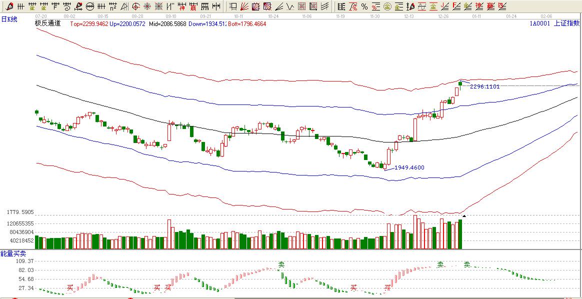 ★ 依據(jù)贏家江恩系統(tǒng)極反通道提示:大盤最高上攻至極反通道紅色外軌道線2295點(diǎn)附近遇阻回落,大盤藍(lán)色上軌支撐2200點(diǎn)。大盤依然處于極反通道生命線上方看多。