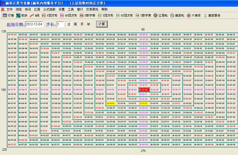 ★依據(jù)時間正方形提示:下一時間在13.01.15在225度位置13.01.18在270度位置