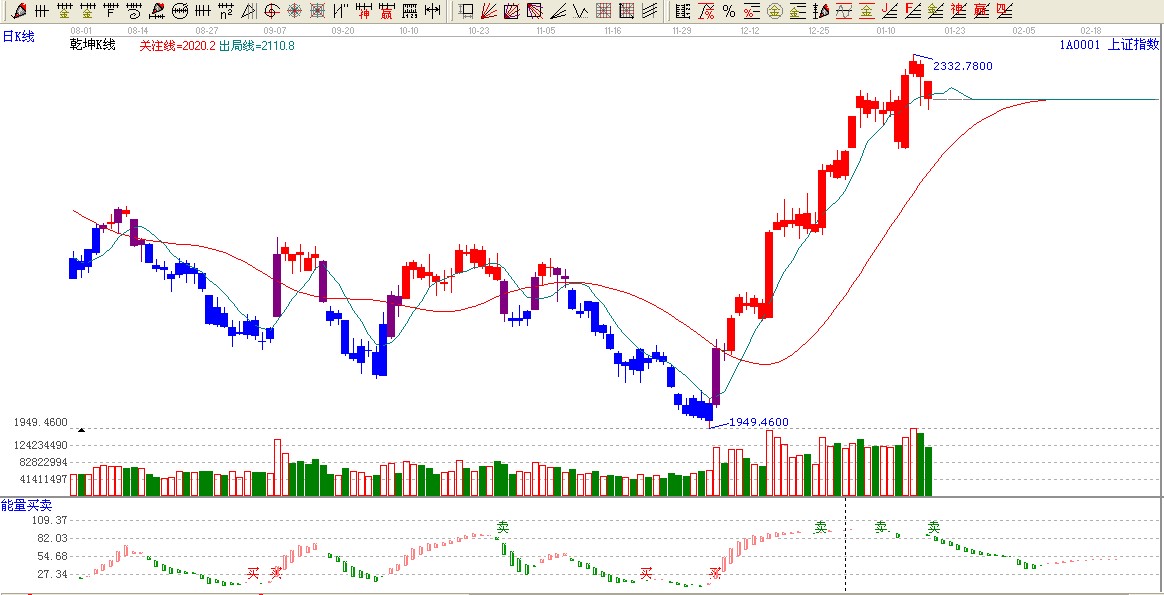 ★依據(jù)贏家乾坤K線提示:大盤在紅色區(qū)間,跌破出局線,短線謹慎看多。