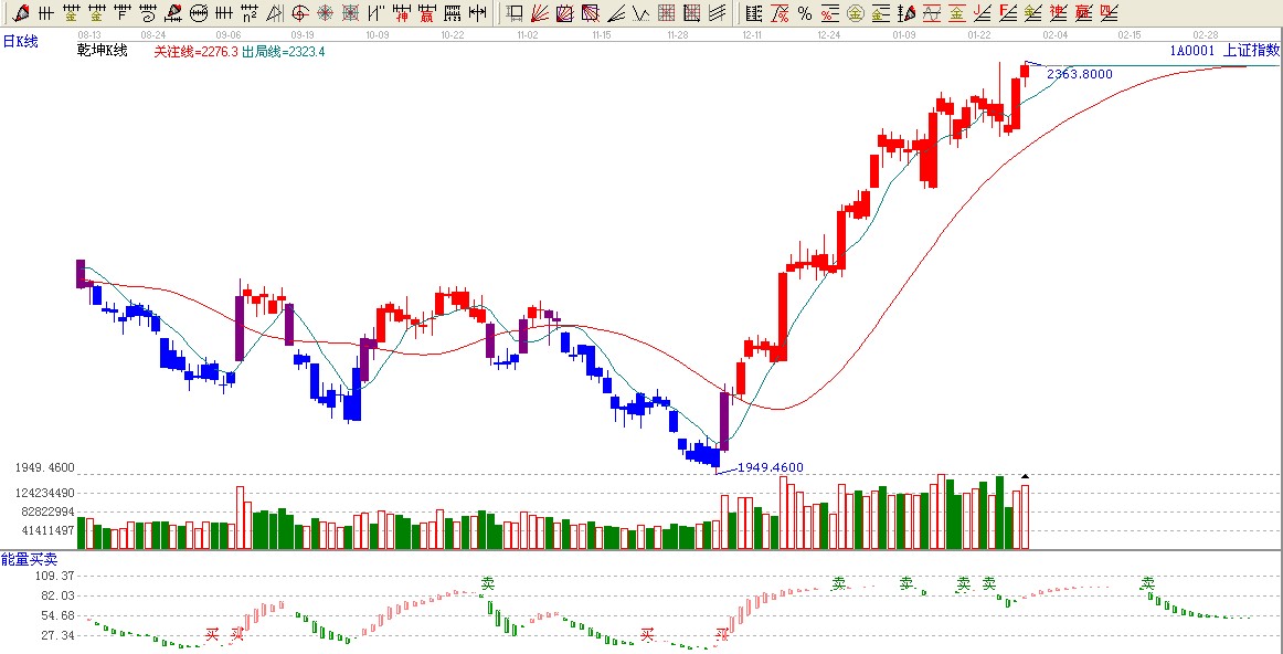 ★依據(jù)贏家乾坤K線提示:大盤在紅色區(qū)間看多做多。