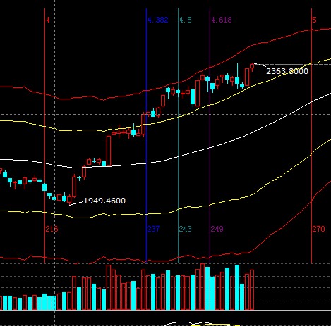 大盤運行在極反通道超強通道,短周期K線距離強勢外軌線較近盤中會在此區(qū)域受阻,整體做多觀點不變,通過提升止損位保護收益或倉位上做高拋低吸,短期支撐2335-2348,阻力2368-2374;
