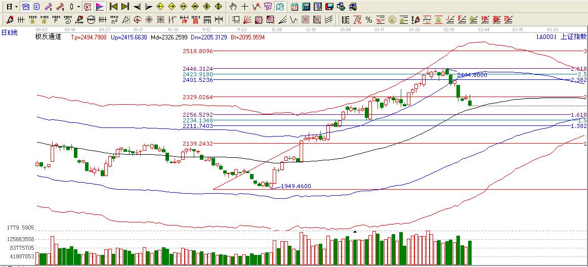 ☆依據(jù)贏家黃金價(jià)格延伸線提示:大盤(pán)破位反抽黃金分割延伸線2倍位置遇阻回落,短期不過(guò)看低一線至1.618位置2255附近.