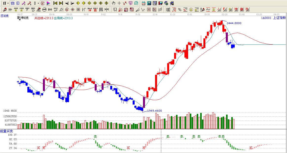 ☆依據(jù)贏家乾坤K線提示:大盤處于藍色區(qū)間,看空做空。