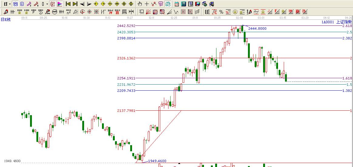 ☆依據(jù)贏黃金價格延伸線提示:大盤 4次考驗黃金分割1.618位置2255最終失守,這里短期將構(gòu)成上行壓力。短期不過看跌至黃金分割1.5位置2233.55點