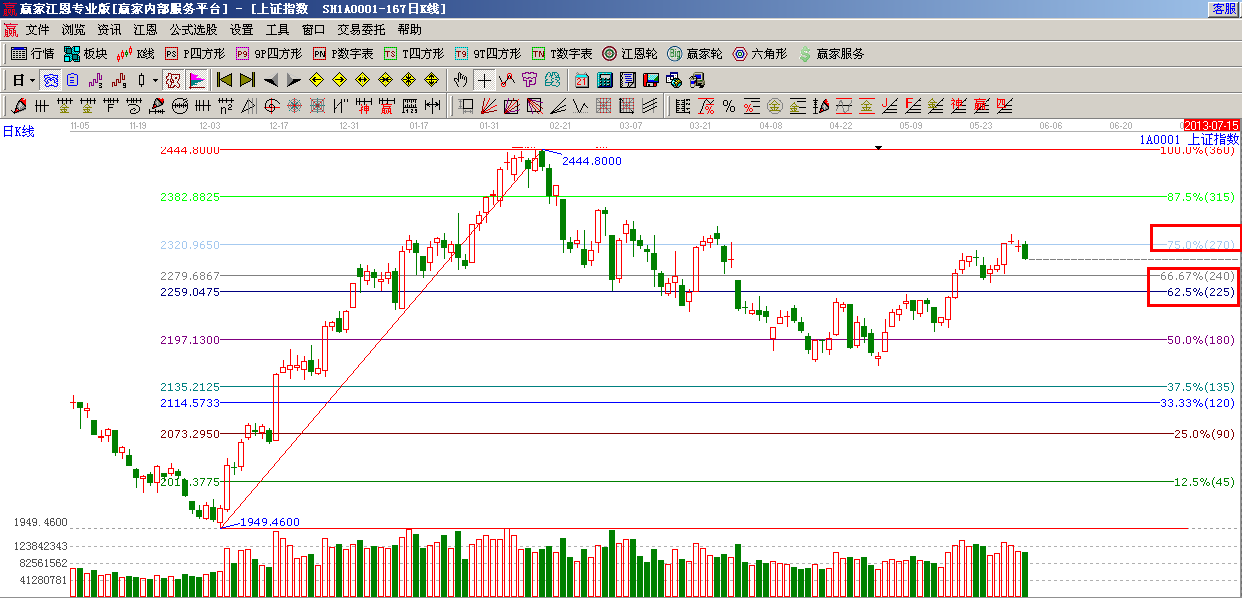 ★依據(jù)贏家江恩系統(tǒng)波段百分比提示:失守2320點(diǎn)(270度),短周期震蕩后有望上攻確認(rèn)跌破有效性,反抽不能突破則做頭跡象將明確如圖(2);