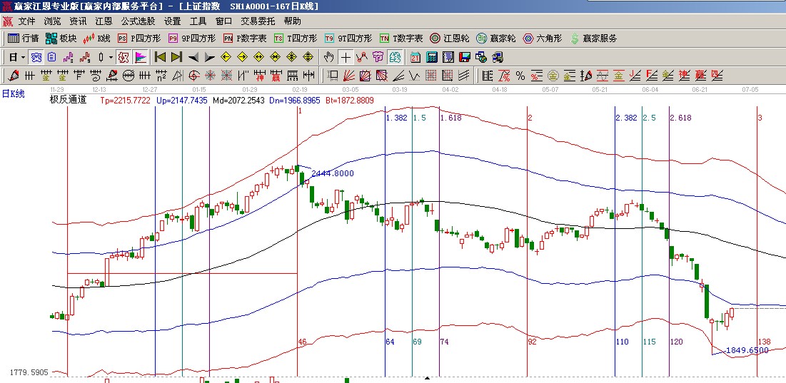☆依據(jù)贏家江恩系統(tǒng)極反通道提示:短周期30分鐘突破生命線,K線上攻力度有所緩,注意短周期與日線外軌線阻力;