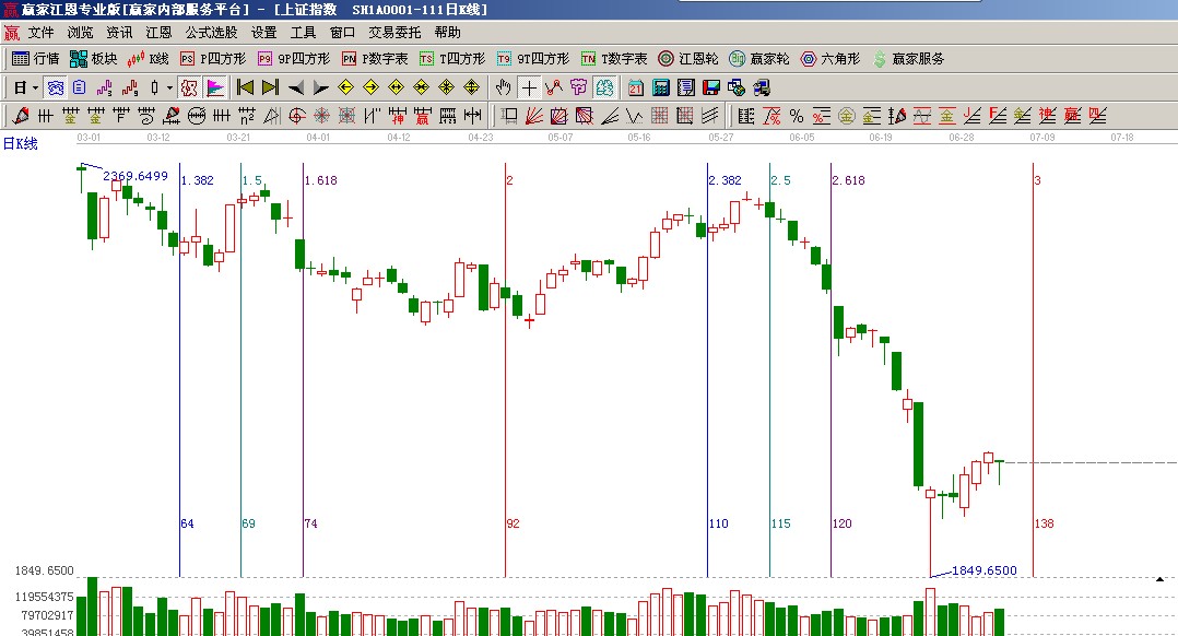 ☆依據(jù)贏家江恩系統(tǒng)乾坤K線提示: 盤中下探短期出局線午盤收回,震蕩修復(fù)關(guān)注線隨后是大的方向選擇;(1);