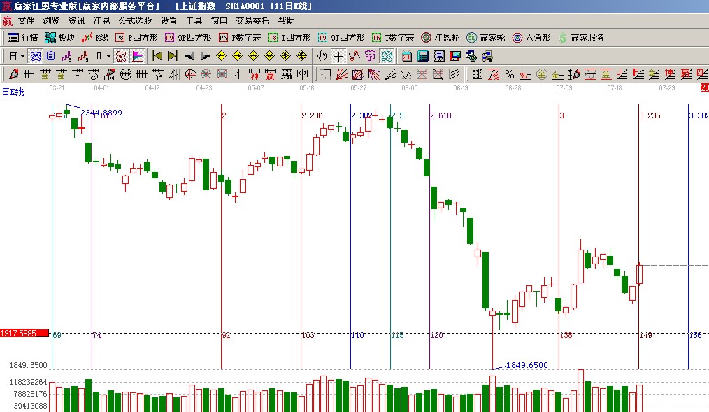 ★依據(jù)贏家江恩系統(tǒng)黃金時(shí)間周期線提示:日線級(jí)別的下個(gè)時(shí)間窗為8月1號(hào);