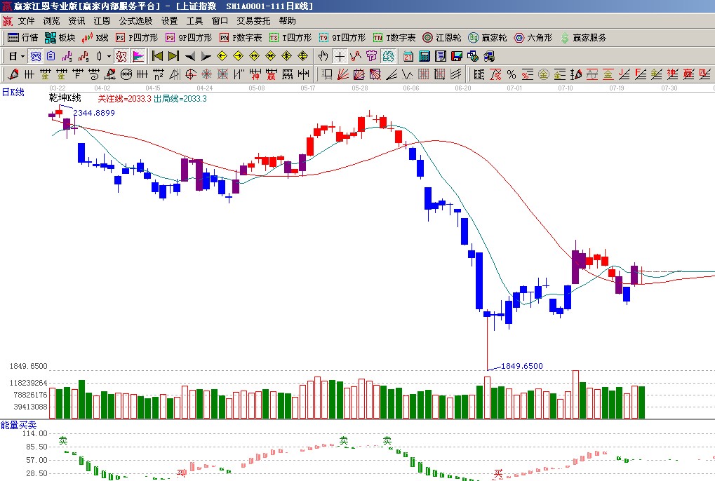 ☆依據(jù)贏家江恩系統(tǒng)能量買賣提示:多空轉(zhuǎn)換節(jié)點,等待信號的確認;(1)