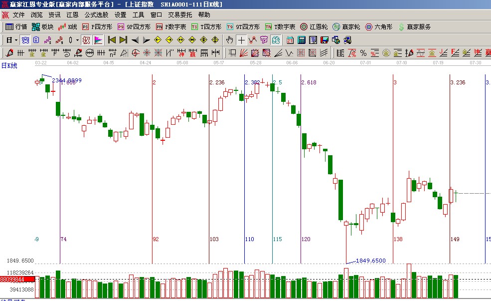 ★依據(jù)贏家江恩系統(tǒng)黃金時間周期線提示:日線級別的下個時間窗為8月1號;