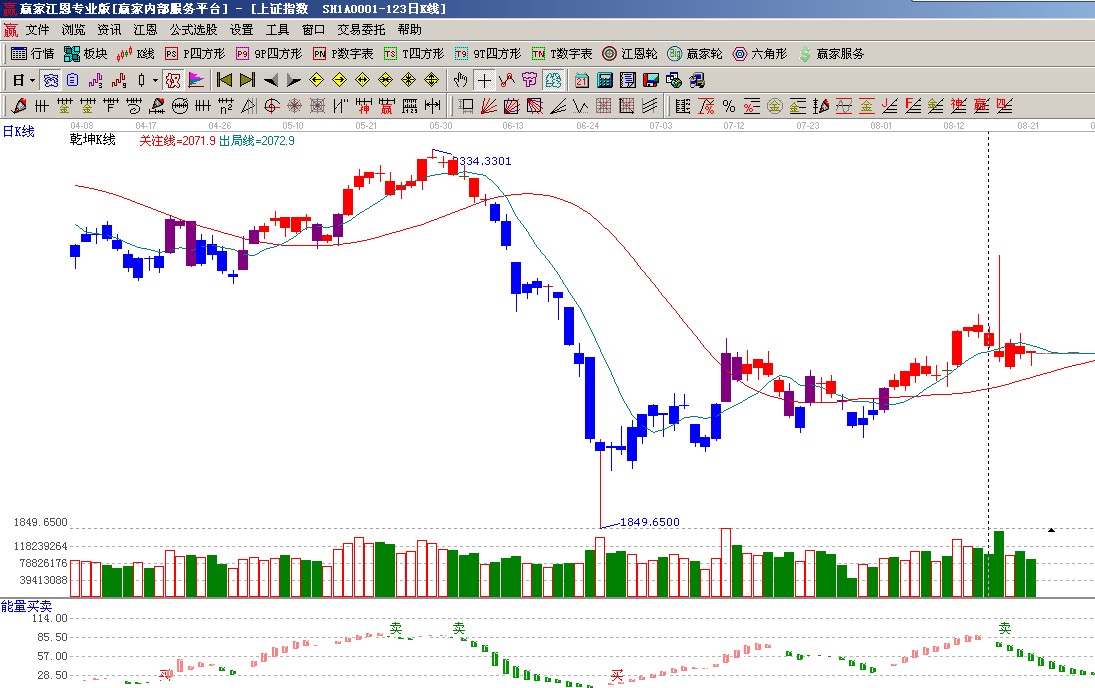 ☆依據(jù)贏家江恩系統(tǒng)能量買賣提示:空頭占據(jù)優(yōu)勢,出現(xiàn)賣出信號(hào);(1)