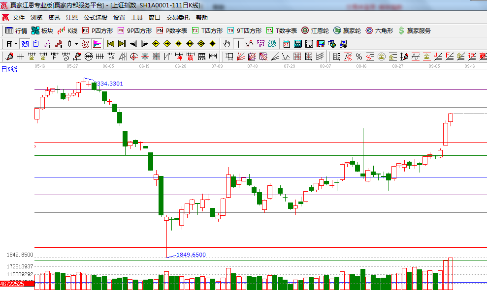 ★依據贏家江恩系統乾坤K線提示:紅色區(qū)域表示強勢做多區(qū),策略上以持股為主;(1)