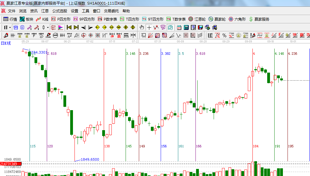 ★依據(jù)贏家江恩系統(tǒng)乾坤K線提示: 短期出局線壓制,關(guān)注線上移,兩線粘合是市場(chǎng)有望轉(zhuǎn)入震蕩;