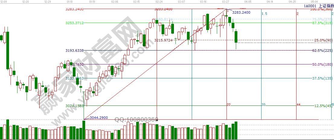 江恩看盤綜述:依據(jù)贏家江恩技術(shù)工具分析得出:周四,股指放量殺跌,試探江恩225度線支撐。此位置3193附近雖有一定支撐,但反抽能否收復(fù)3216點(diǎn)仍是關(guān)鍵,否則將圍繞在3216--3193點(diǎn)之間弱勢(shì)整理,下方180度支撐在3163點(diǎn)附近,時(shí)間上,3月27日形成高點(diǎn),那么下一時(shí)間點(diǎn)將對(duì)應(yīng)4月11日左右。預(yù)計(jì)短期內(nèi)股指將圍繞江恩225度3193點(diǎn)附近弱勢(shì)整理為主,操作上,暫時(shí)輕倉(cāng)短線操作,板塊上,依然是國(guó)企改革、一帶一路相關(guān)概念。