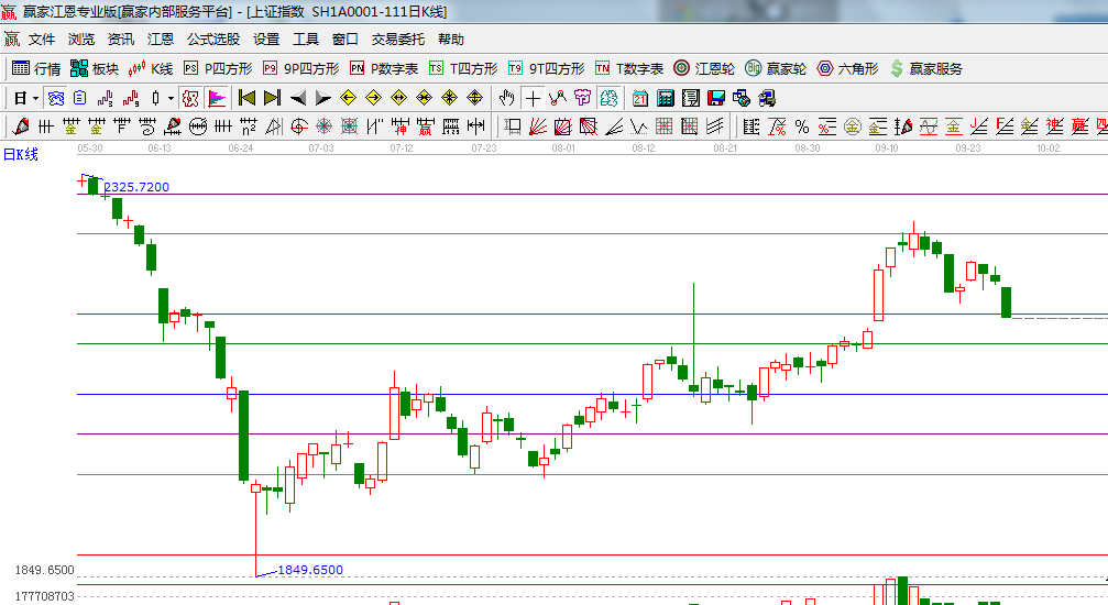咨詢:13333833889研究歷史預(yù)測(cè)未來是江恩理論代名詞,贏家江恩系統(tǒng)則是依據(jù)江恩理論的核心理論自然規(guī)律而研發(fā),一直以來直觀的通過工具理性的分析判斷指數(shù)、個(gè)股的走勢(shì),近期指數(shù)的走勢(shì)一步步的在安著分析預(yù)判的運(yùn)行,如昨天分析所談到60分鐘生命線2195的失守將展開日線的正式調(diào)整,市場(chǎng)今天破位后出現(xiàn)快速下跌,這種格局要持續(xù)到節(jié)后的一周左右的時(shí)間里才會(huì)有所緩解,因此操作上放慢節(jié)奏,權(quán)重股的調(diào)整將指數(shù)帶動(dòng)下來,為后期上攻拉空間,虧損過多的個(gè)股不需要出局,做出減倉(cāng)尋找機(jī)會(huì)補(bǔ)倉(cāng);假期前還有兩個(gè)交易日,假期效應(yīng)會(huì)再現(xiàn);