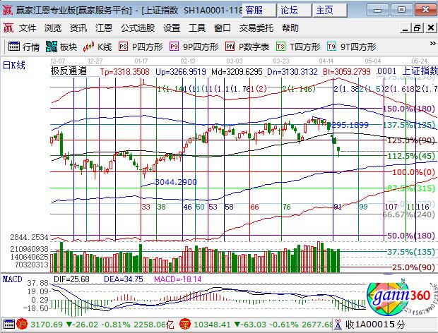 咨詢:13333833889周三大盤跳空低開呈現(xiàn)四連陰且近日留下兩個(gè)跳空缺口,滬指尾盤回抽收長(zhǎng)下影線,深市跌幅相對(duì)較少,創(chuàng)業(yè)板跌幅最小。板塊方面,家電和環(huán)保板塊逆勢(shì)上漲,鋼鐵、煤炭有色藍(lán)籌領(lǐng)跌,權(quán)重股石油、銀行跌幅也不小;題材方面,超跌次新和高送轉(zhuǎn)領(lǐng)漲,雄安新區(qū)個(gè)股分化,稀土、鋰電和軍工領(lǐng)跌,個(gè)股下跌居多,成交量較前日有所放大。技術(shù)方面,滬指日線跌破生命線,跌至江恩百分比45度3154點(diǎn)后反抽,此線是生命線與弱勢(shì)外軌線懸空中心線,短周期多數(shù)在極反通道弱勢(shì)外軌線位置,綜合兩點(diǎn)分析得出滬指有望在此位置緩跌或止跌,倉(cāng)位上破生命線安規(guī)則已做減倉(cāng)的籌碼,短線可以加跌幅較大的個(gè)股做差價(jià),要求快進(jìn)快出。3152、3258為日內(nèi)支撐,3185、3190為日內(nèi)阻力,僅供參考,不構(gòu)成任何投資建議。
