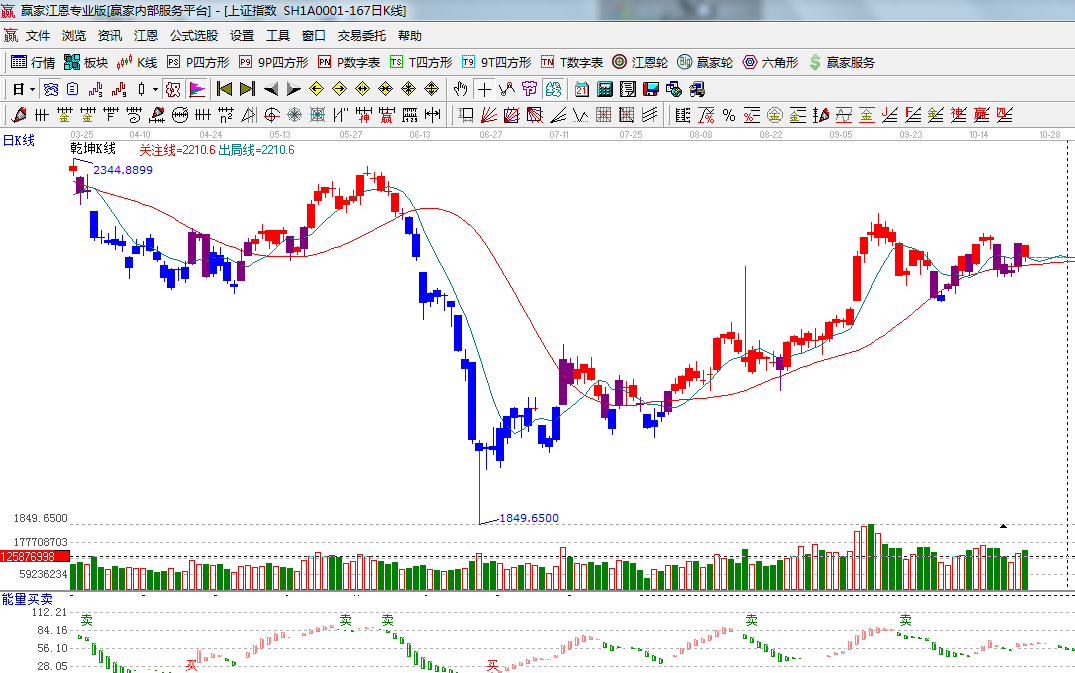 ★依據(jù)贏家江恩系統(tǒng)能量買賣提示:紅色柱子出現(xiàn),多方再次占據(jù)優(yōu)勢;