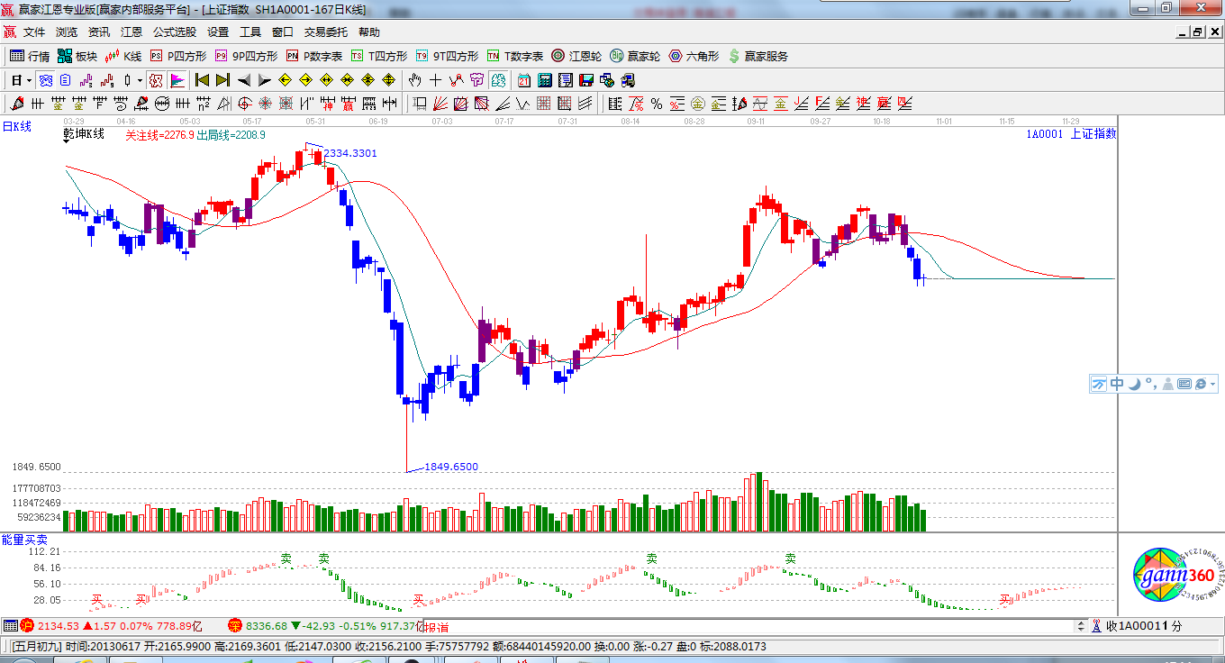 ☆依據贏家江恩系統(tǒng)乾坤K線提示: 藍色休息區(qū)以保守或空倉為主;