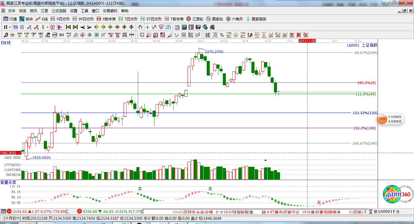 ★依據贏家江恩系統(tǒng)波段百分比延伸提示:江恩百分比45度是2125;