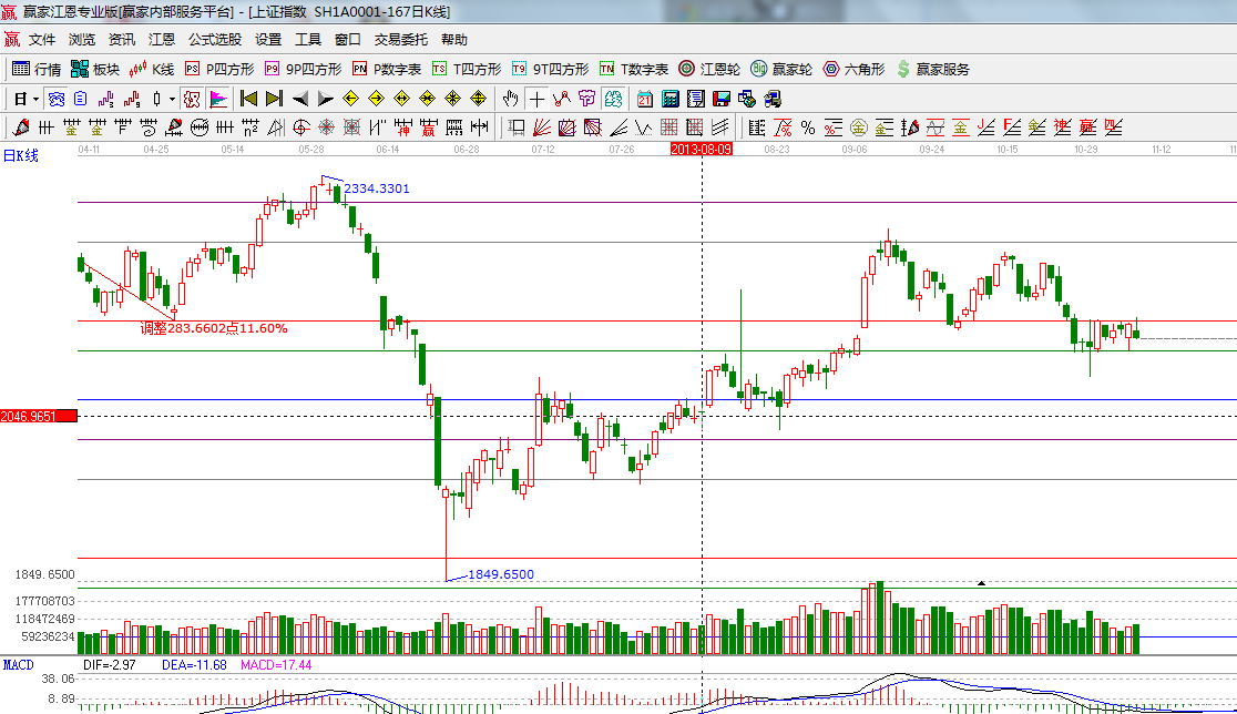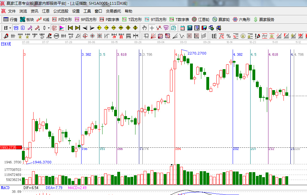 ★依據(jù)贏家江恩系統(tǒng)波段百分比延伸提示:江恩理論百分比45度位置是2125點(diǎn),江恩百分比0度是2160;