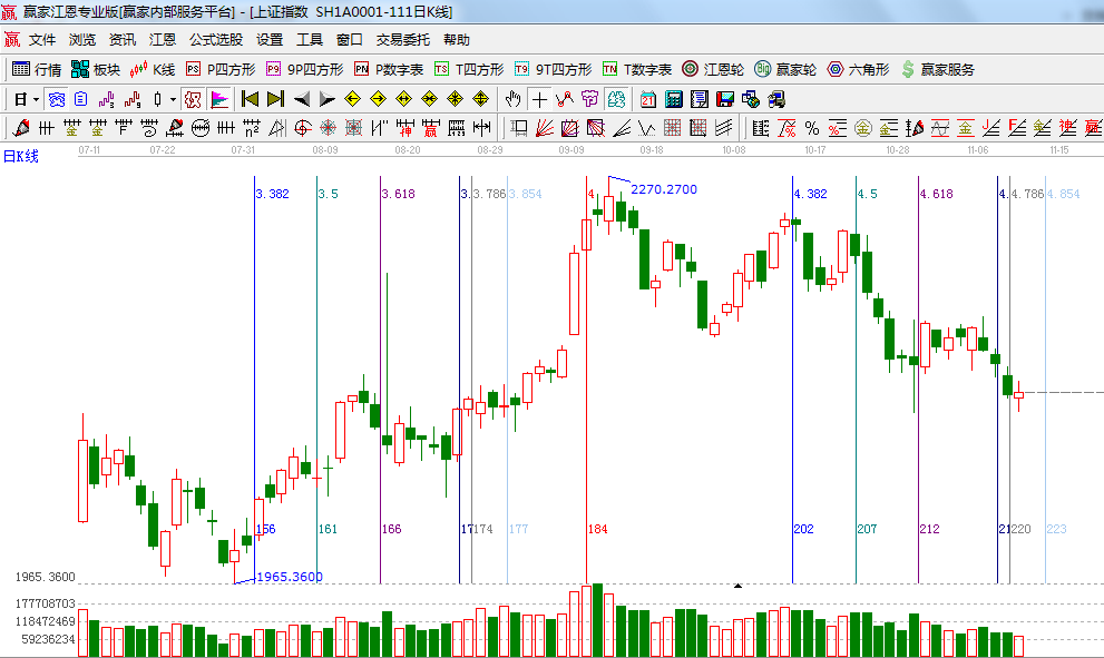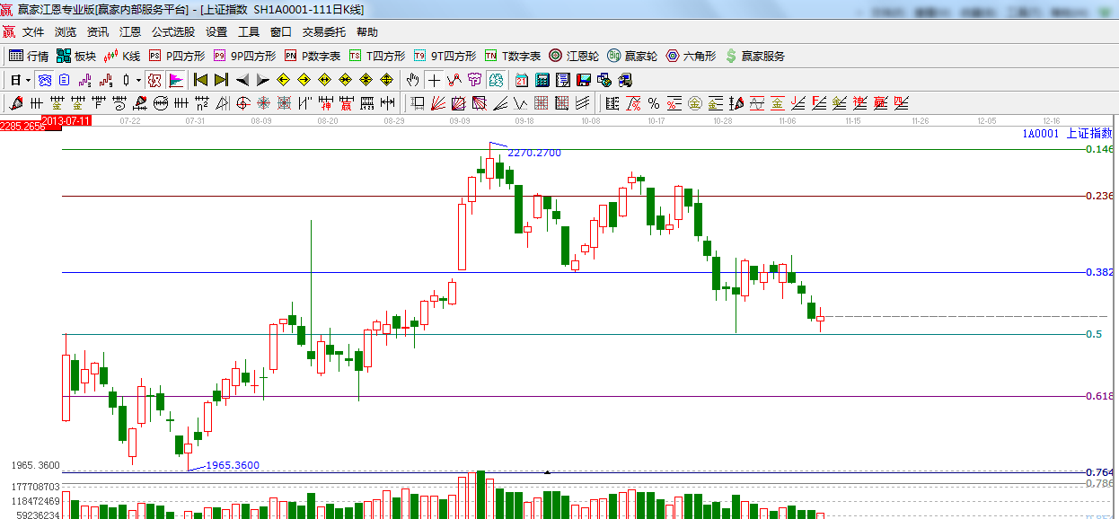 ★依據(jù)贏家江恩系統(tǒng)波段百分比延伸提示:黃金分割價格圖0.5位置是2090,0.618位置是2035;