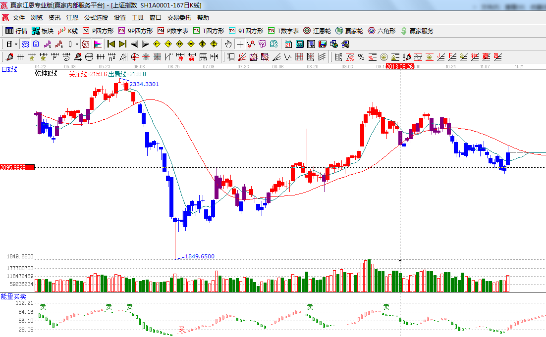 ★依據(jù)贏家江恩系統(tǒng)波段百分比延伸提示:黃金分割價(jià)格圖0.382位置是2149點(diǎn),0.5位置是2090;