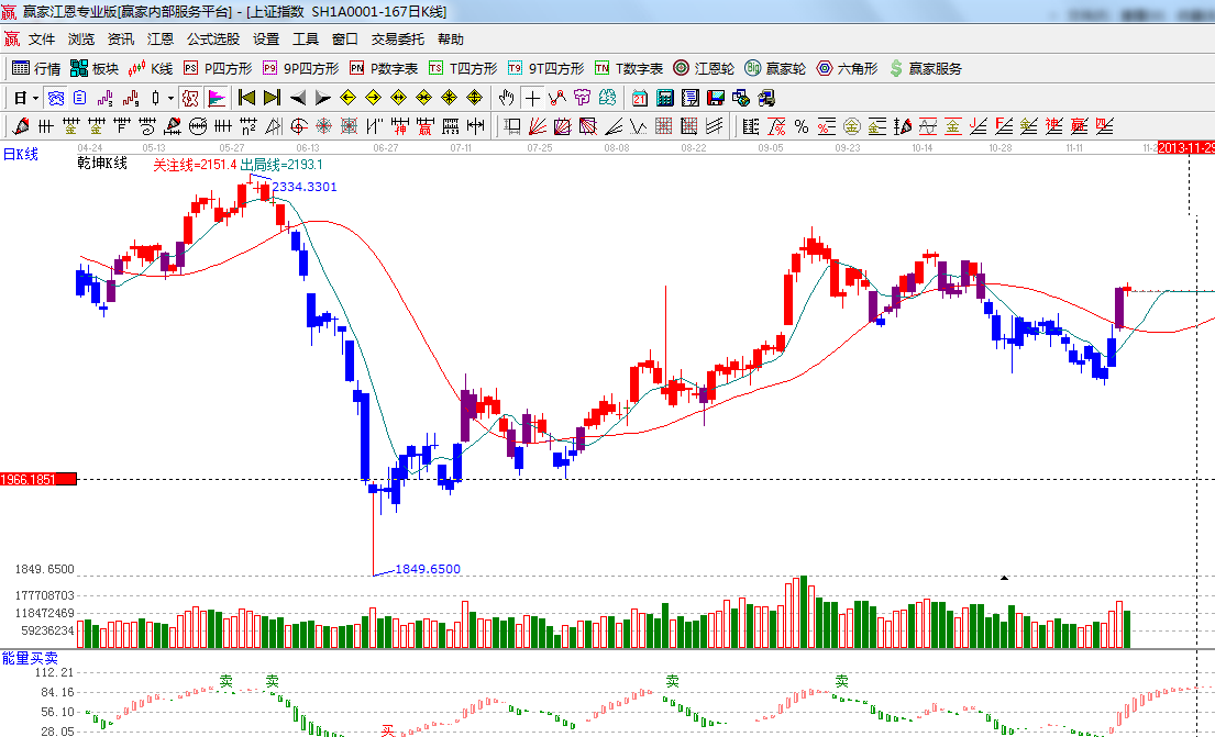 ★依據(jù)贏家江恩系統(tǒng)能量買賣提示:紅色柱子逐步增加,多方占據(jù)主動(dòng)權(quán);